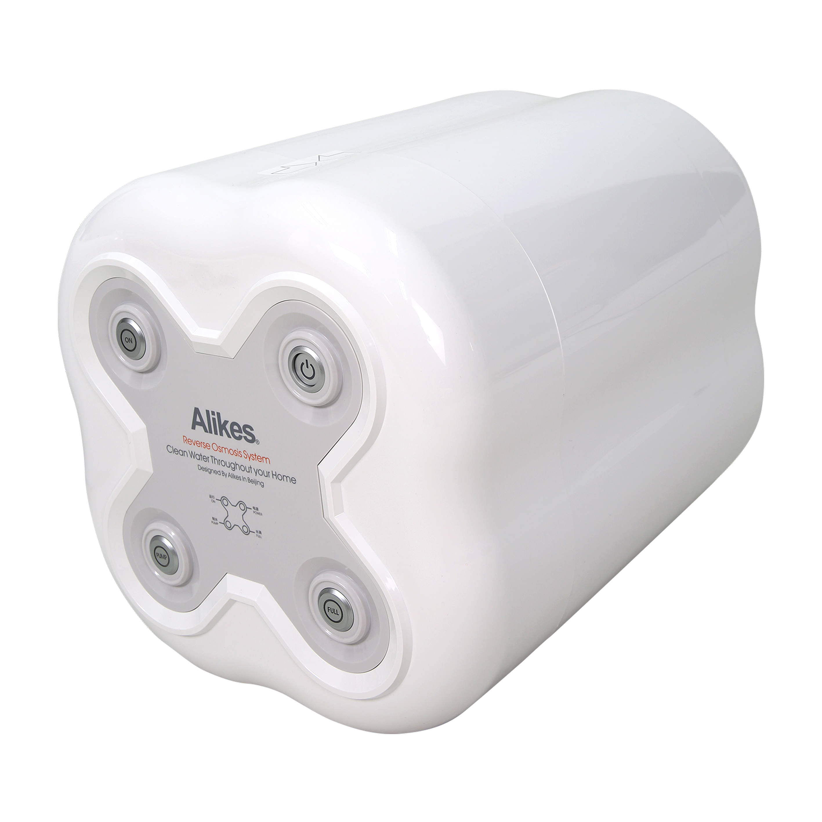 增压泵对原水施加压力,使原水依次流经预处理过滤芯及逆渗透膜.